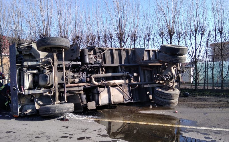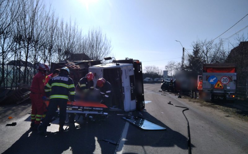 Update Foto Accident în Cluj: Camion răsturnat și trei persoane rănite