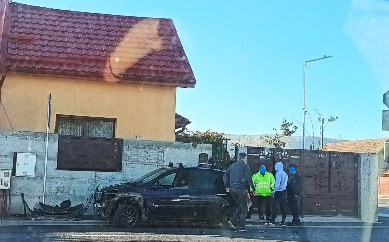 Din primele informații, o mașină a fost grav avariată frontal după ce a intrat în gardul unei case.