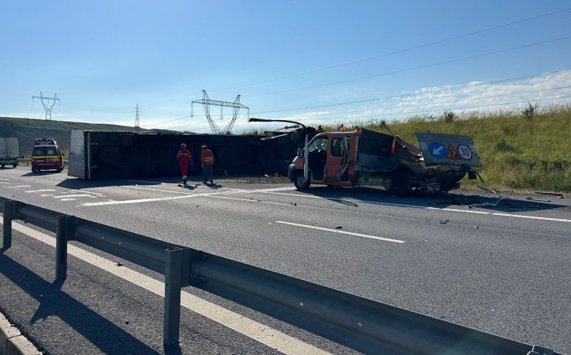 Foto Accident între o mașină a drumarilor și un TIR, pe Autostrada Transilvania . Trafic restricționat