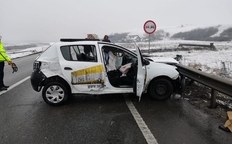 UPDATE, ora 10.23: Accidentul s-a produs pe fondul unei depăşiri neregulametare, peste marcajul longitudinal continuu. Traficul este în continuare deviat prin Apahida. Conducătorul care a rămas încarcerat are 25 de ani şi este din Jibou. Tânărul a fost cel care a provocat accidentul.
