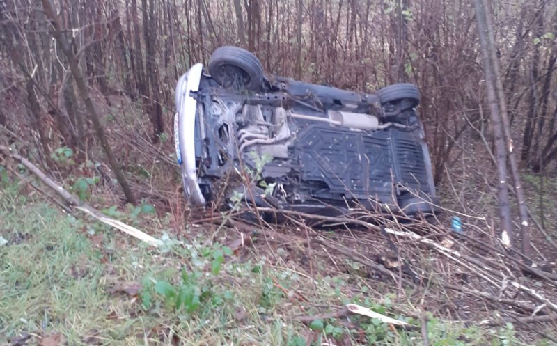 Foto Accident pe un drum din Cluj! A ieșit cu mașina în decor și s-a răsturnat