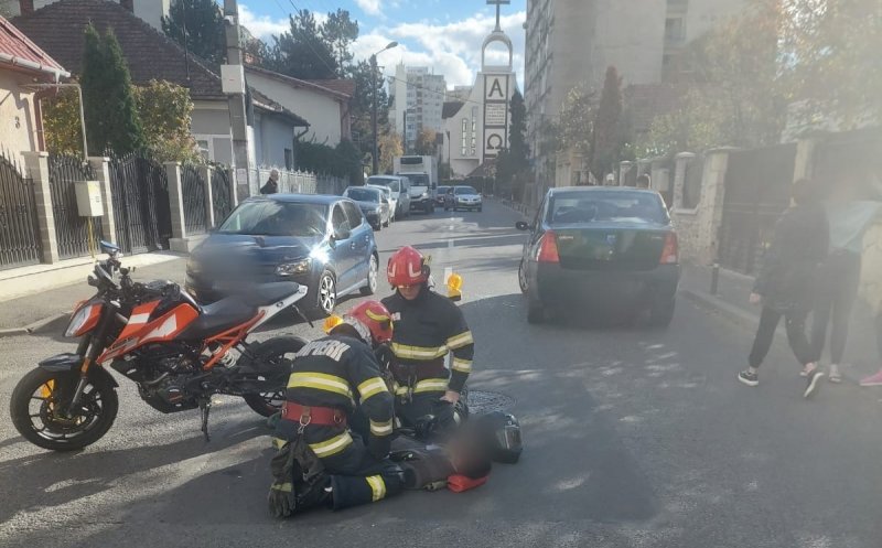 "La fața locului s-au deplasat o autospecială cu modul de descarcerare și un echipaj SMURD, unde au găsit o motocicletă și un autoturism avariate. Conducătorul motocicletei, respectiv un tânăr în vârstă de aproximativ 20 de ani, a primit primul ajutor calificat și a fost transportat la spital pentru îngrijiri medicale. Conform primei evaluări, acesta prezenta suspiciuni de fracturi la nivelul unui membru inferior și unul superior", a transmis ISU Cluj.