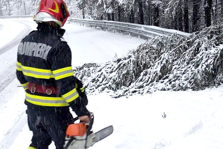 În dimineaţa de luni, 25 decembrie, pompierii clujeni au anunţat o intervenţie pe drumurile judeţene unde au căzut mai mulţi arbori.