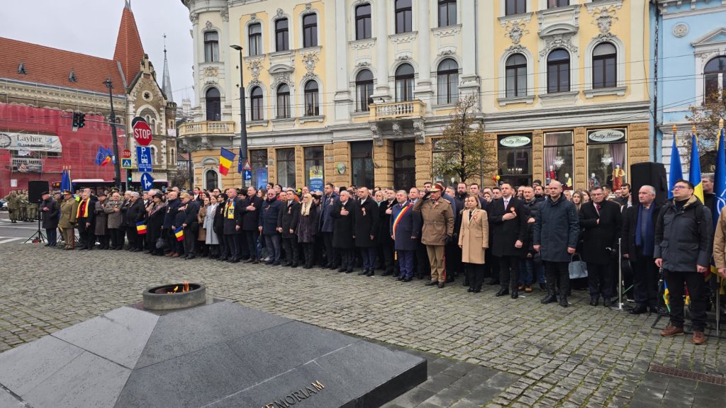 Manifestările dedicate Zilei Naționale a României au început la Cluj-Napoca în Piața Mihai Viteazul, cu ceremonialul depunerii de coroane și jerbe de flori la statuia ecvestră a domnitorului.