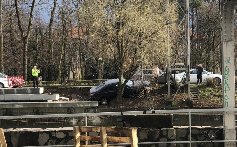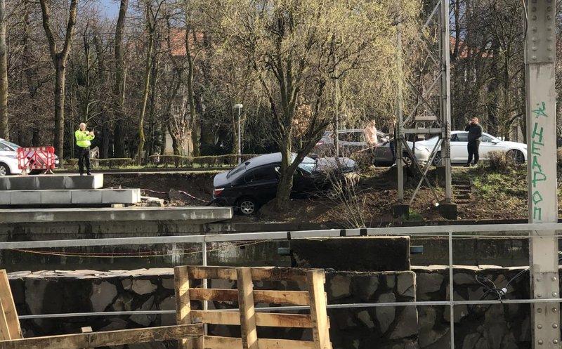 Foto Autoturism "eșuat" pe malul Someșului, aproape de Cluj Arena. Doar un copac l-a oprit pe șofer să ajungă în apă