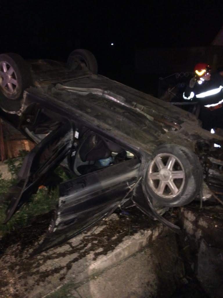 Evenimentul a avut loc în jurul orei 22.00, iar pompierii sosiți la locul evenimentului au găsit unul dintre autoturismele implicate răsturnat pe plafon. Înăuntru acestuia se afla un bărbat cu multiple traumatisme.