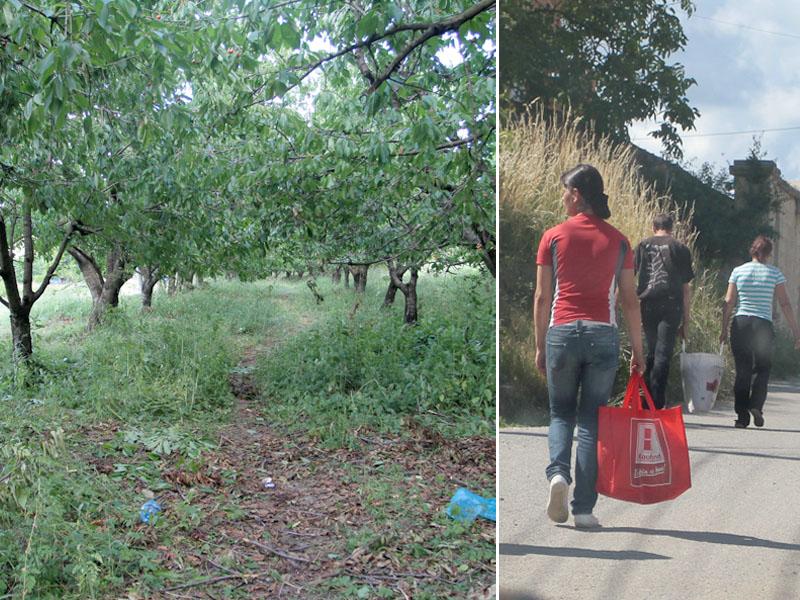 Singurii doi paznici ai livezii au rămas Bruno şi Fili, un imens rottweiler negru şi o corcitură tărcată "rea a dracului". "I-am legat aci de pomi, de vreo două săptămâni, să-mi rămâie şi mie măcar de-un compot. Am mai ieşit noaptea să strig la ei: mă oamini, măcar nu rupeţi crengile să rămâie şi la anu', da' parcă ai cu cine? N-ai ce face, e săracă lumea!", spune domnu' Nelu, care are pământ de straturi şi o căsuţă în apropiere.