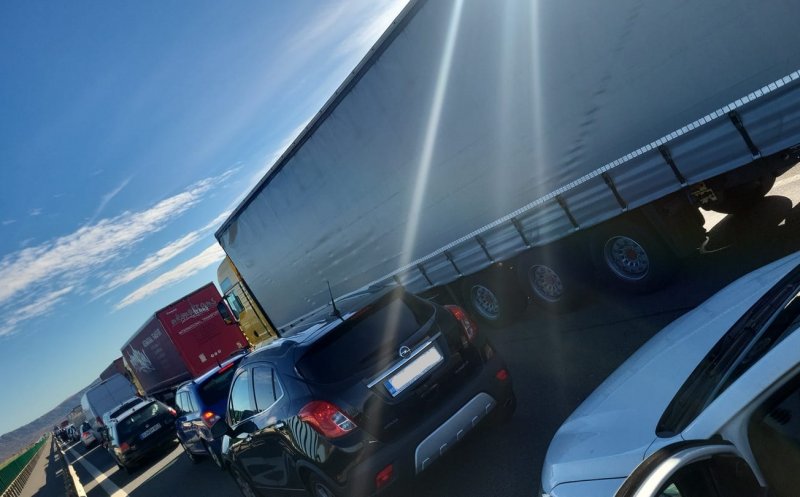 Foto Blocaj pe autostradă în zona Câmpia Turzii: "E o coadă de 5 km. Evitați zona. Se lucrează la pod"