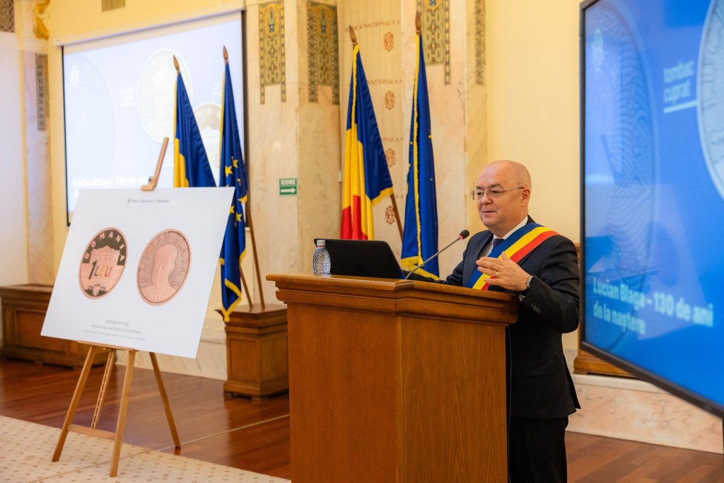 Banca Națională a României (BNR) a lansat luni, 27 octombrie 2025, prima monedă colorată din istoria sa, o piesă din tombac cuprat dedicată aniversării a 130 de ani de la nașterea lui Lucian Blaga.