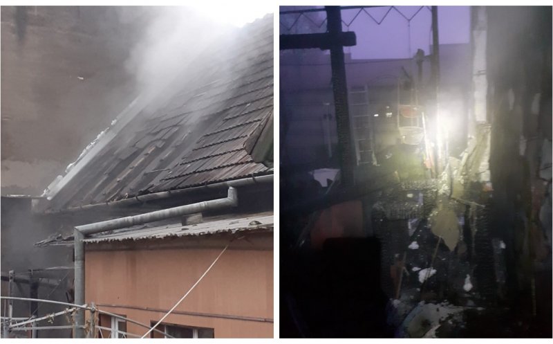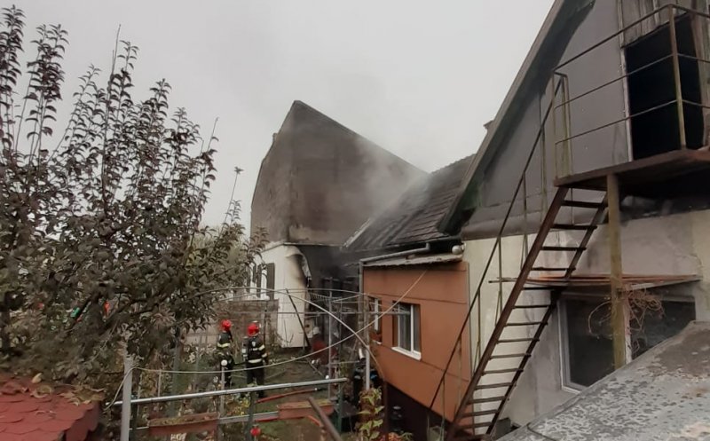 Foto Casă distrusă de flăcări în Cluj. Pompierii au luptat aproape două ore cu focul