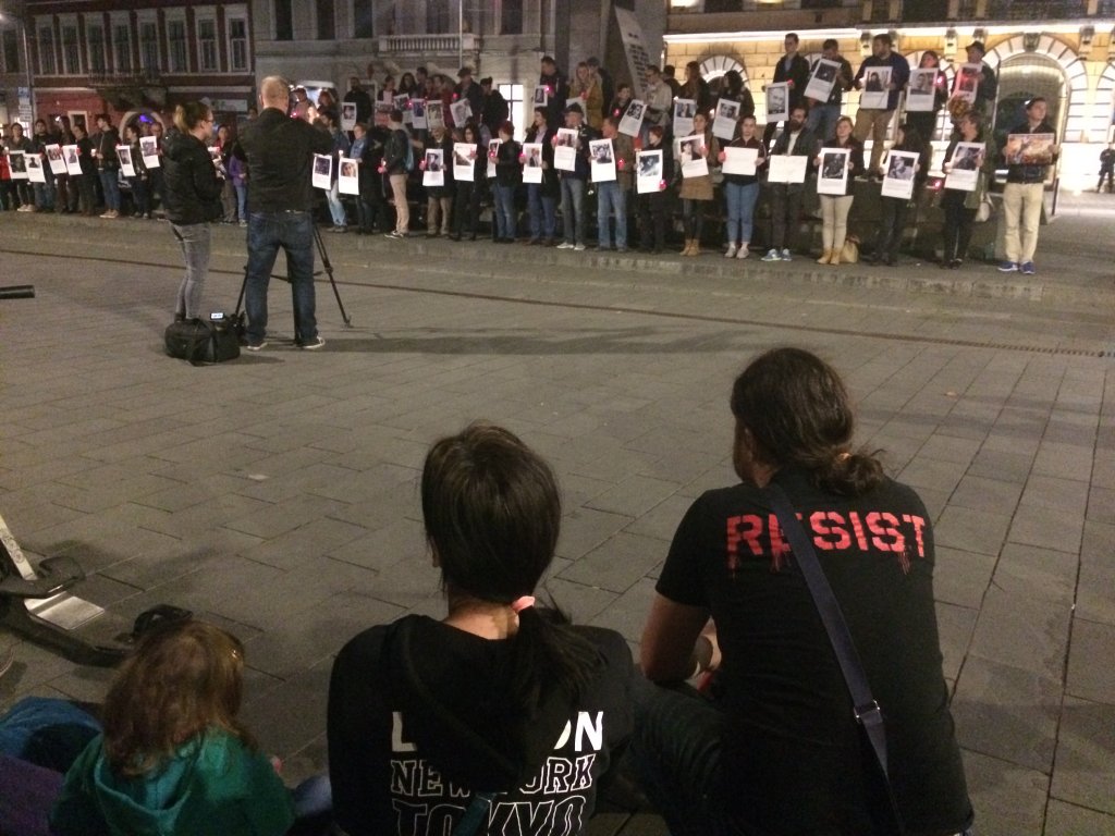 Sute de clujeni au participat, marti seara, la un eveniment comemorativ în memoria victimelor incendiului din clubul Colectiv.