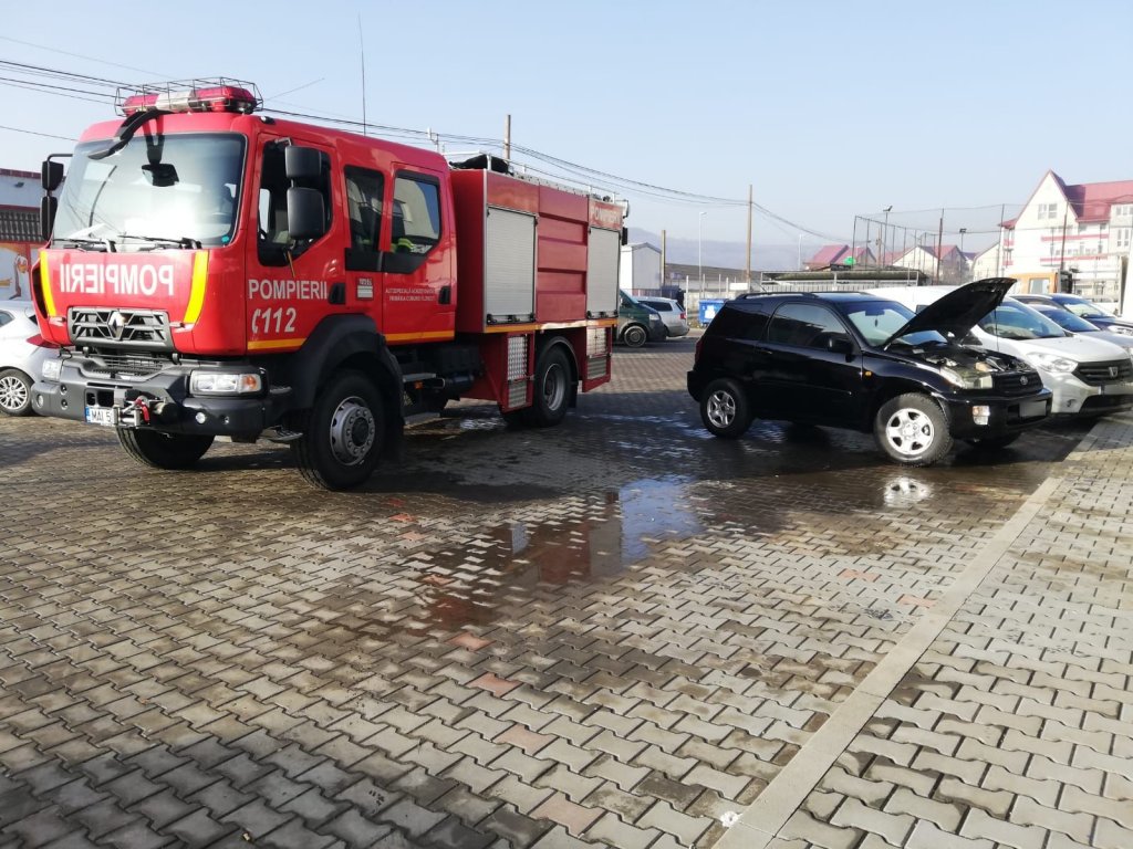 Solicitarea a fost înregistrată în jurul orei 8.30, iar pompieri au găsit autoturismul staționat fumegând din zona compartimentului motor și proprietarul revenit lângă acesta.