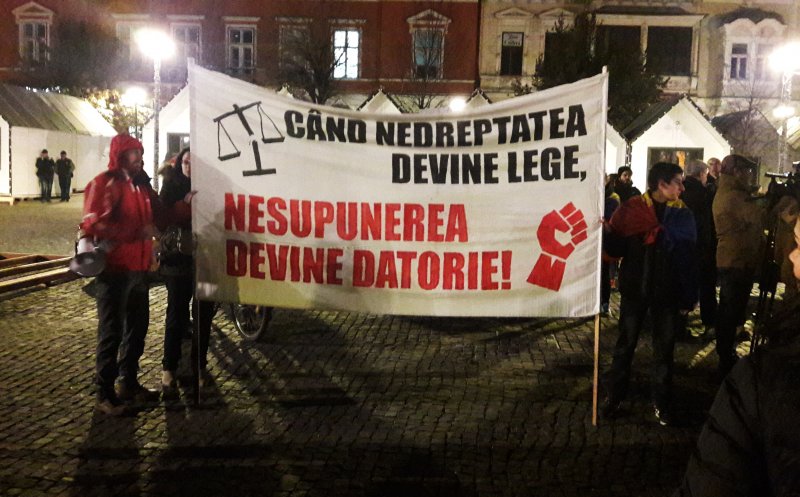 Peste 100 de oameni au protestat, duminică seara, în Piața Unirii din Cluj-Napoca, cerând aplicarea tuturor solicitărilor din raportul MCV și demisia imediată a guvernului ”Dragnea-Dăncilă”.