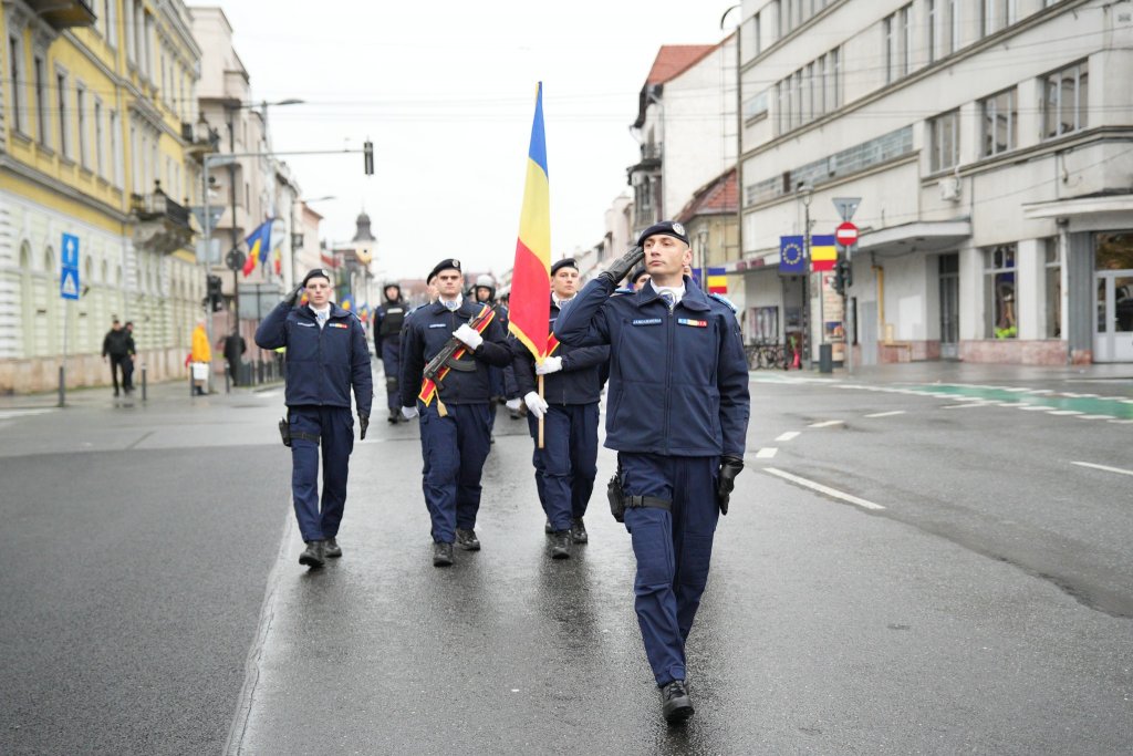 “Le transmitem un călduros ‘La mulți ani!’ colegilor noștri, Fleșeriu și Grecu, care își serbează astăzi ziua onomastică și care fac parte din detașamentul de defilare.
