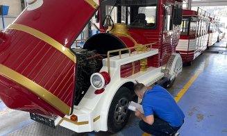 Un tractoraș colorat a obținut avizul tehnic de la RAR Cluj și este pregătit să-i plimbe pe turiștii care vor să ajungă în zone precum Salina Turda sau Cheile Turzii.
