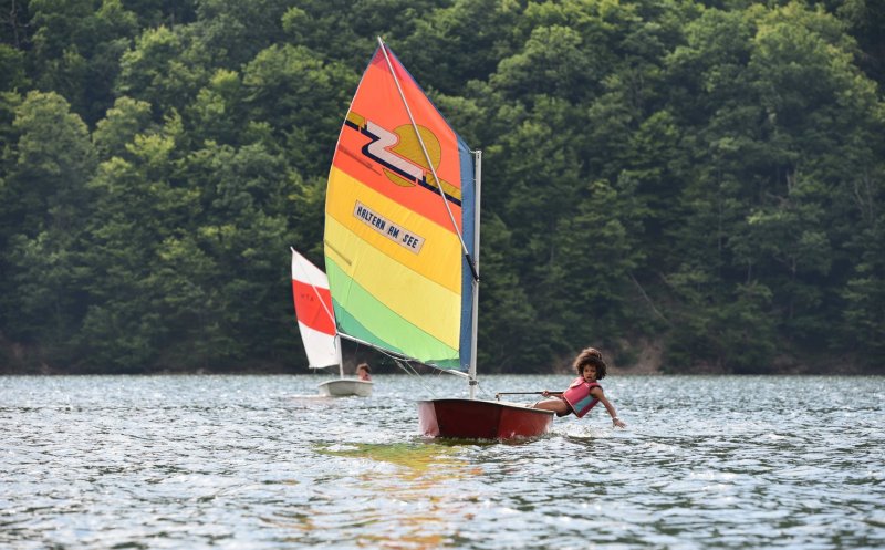 - Optimist – 100 lei / zi -un velier pentru o persoană, cu o singură velă si este destinat copiiilor până la vârsta de 15 ani.