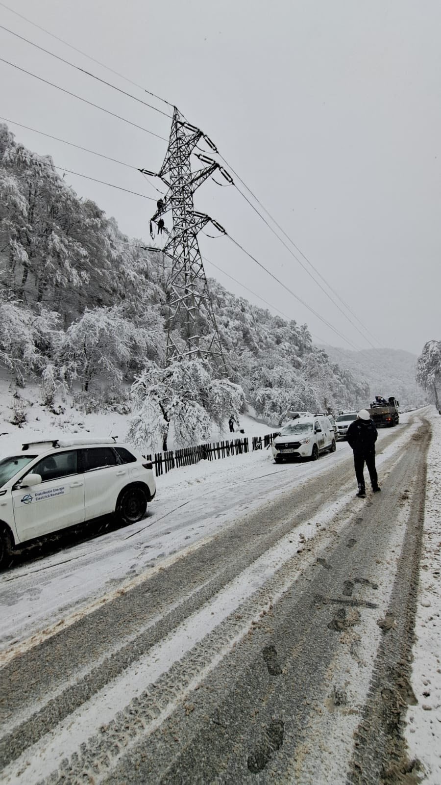 „Realimentarea nu începe cu o manevră simplă. Începe cu deszăpezirea drumurilor imposibil de parcurs, cu curățarea culoarelor de rețea cu drujba, cu accesul făcut pas cu pas, cu utilaje speciale, acolo unde natura nu mai lasă loc de greșeală. Abia apoi urmează identificarea defectelor. Abia apoi, repararea”, se descrie într-o postare pe Facebook a companiei Distribuție Energie Electrică România.