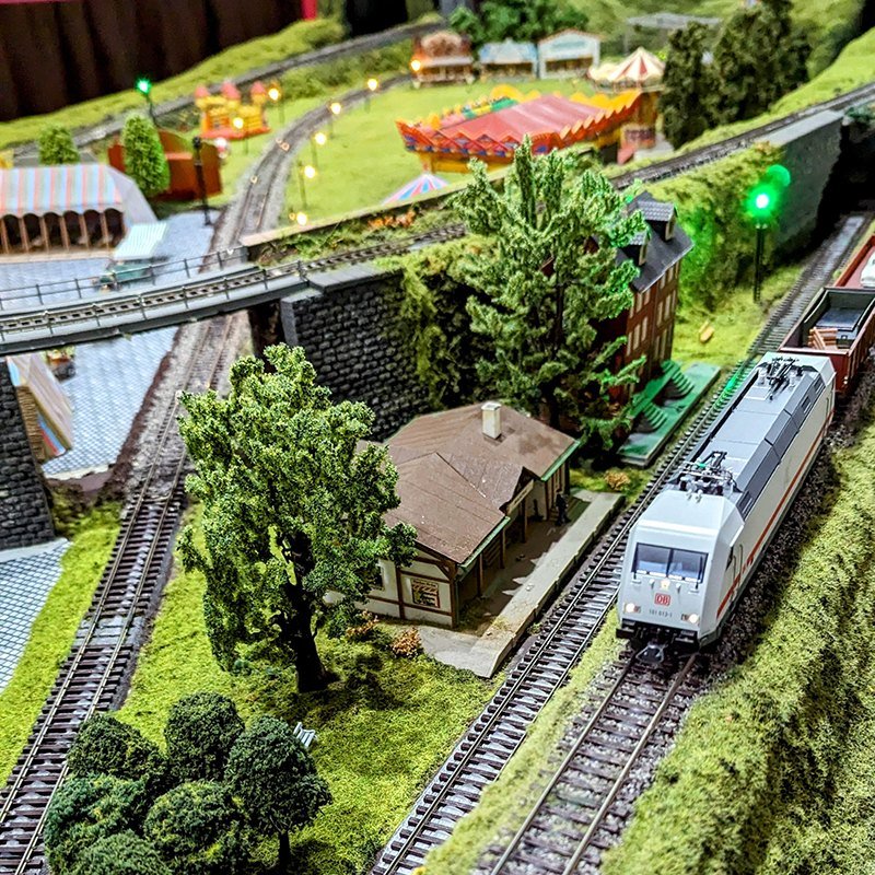 Concret, expoziția cuprinde zeci de locomotive, sute de metri de cale ferată, mii de figurine și detalii, integrate într-o dioramă de peste 150 mp, ce ilustrează cele patru anotimpuri. Există chiar și o zonă „Academy”, unde, cu ajutorul tabletelor puse la dispoziție de organizatori, vizitatorii pot controla trenulețele și garniturile.