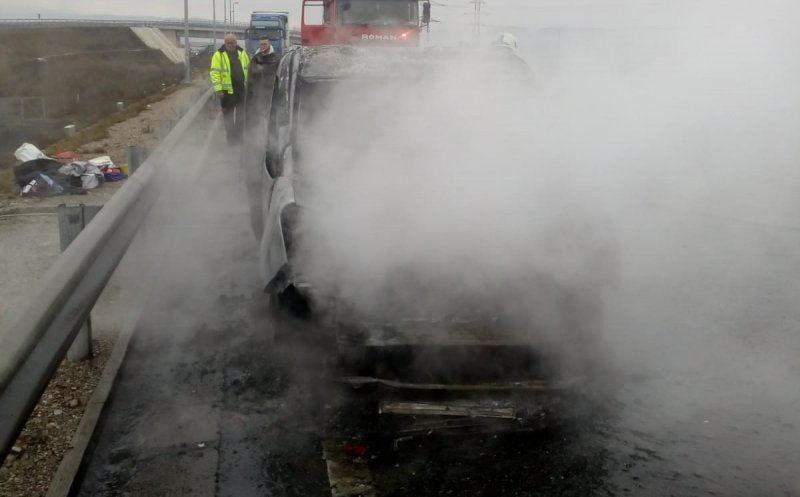 Pompierii clujeni au intervenit, vineri, pentru a stinge flăcările care au cuprins o autoutilitară, pe autostrada A10, în apropiere de Turda.