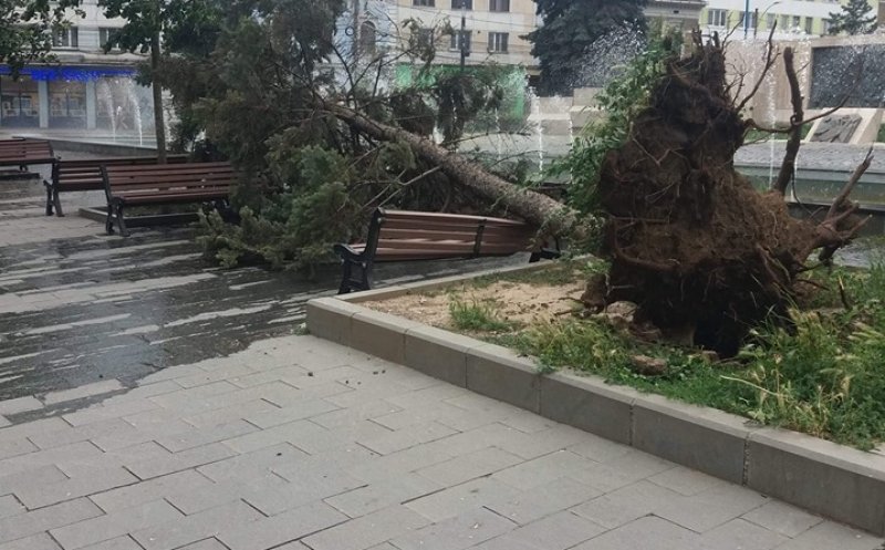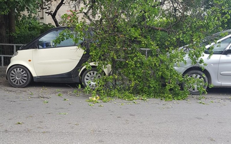 Maşini distruse, copaci căzuţi pe şosea, panouri smulse de vânt.