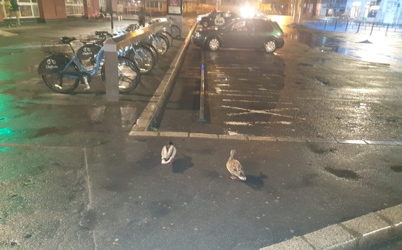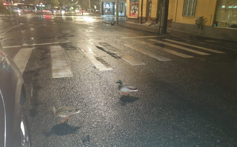 Dacă oamenii din Cluj stau acum în case şi respectă măsurile impuse prin ordonanţele militare, pe străzile oraşului au fost surprinşi alte tipuri de pietoni: ademenite de ploaia din ultimele două zile, raţele sălbatice au părăsit Canalul Morii şi au ieşit la plimbare pe străzi.