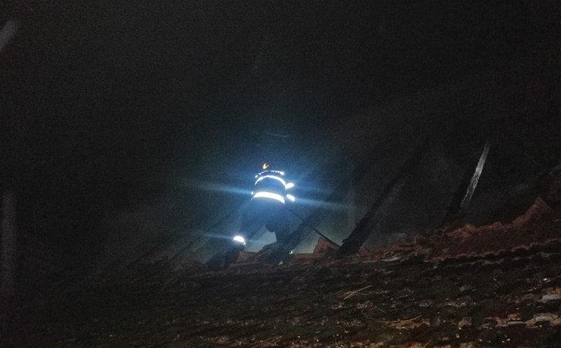 În momentul sosirii echipajelor operative, acoperișul structurii, cu o suprafață de 70 mp, și o stivă de lemne de aproximativ 50 mp erau cuprinse de flăcări.