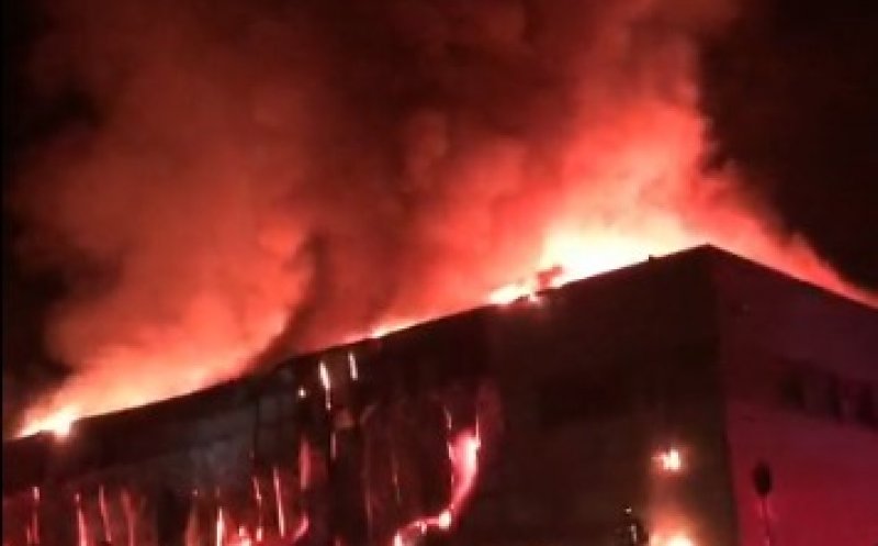 „În aceste momente acționează la locul incendiului 5 autospeciale de stins incendii și trei auto-platforme pentru intervenții și salvări de la înălțimi.