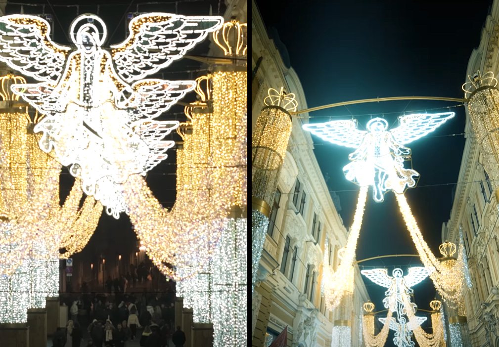 Video Foto Invitație pe străzile Kogălniceanu și Universității: Instalațiile multimedia de lumini aduc atmosfera de sărbători în inima orașului