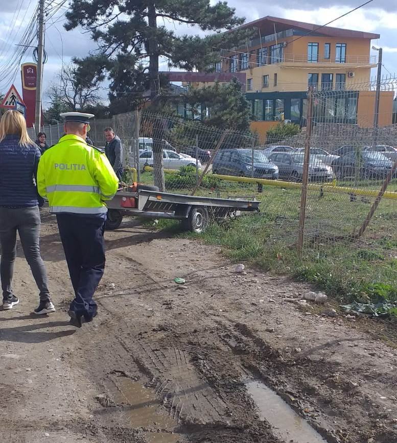 Foto La un pas de o tragedie! Un tânăr a fost lovit de o mașină căzută de pe platformă