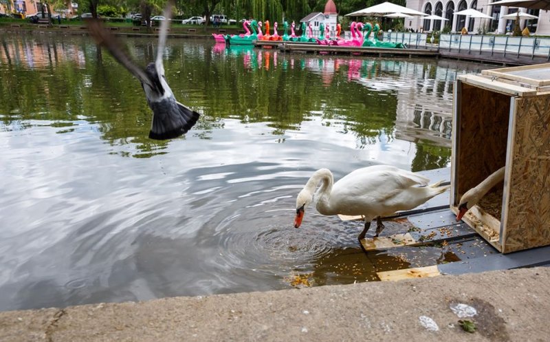 Cele 6 lebede vor încânta clujenii în momentele de relaxare din Parcul Central.