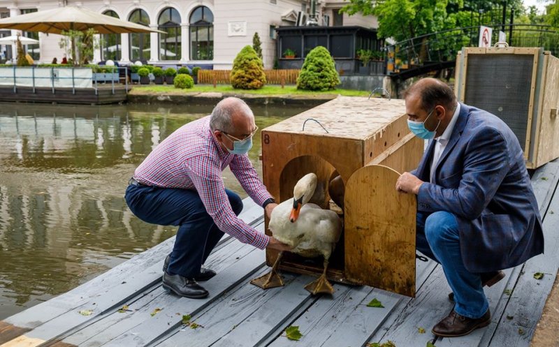 ”Oaspeți de seamă” în Parcul Central din Cluj. Lebedele au revenit pe Lacul Chios.