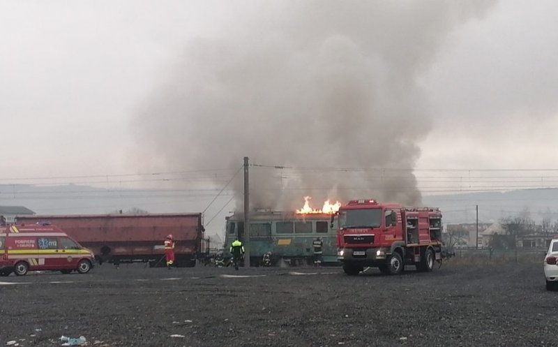 UPDATE: "Pompierii din cadrul Detașamentului Dej acționează în aceste momente pentru stingerea flăcărilor care au cuprins o locomotiva ce tracta o garnitură de vagoane fără pasageri. Pentru a se acționa asupra flăcărilor cu jet de apă a fost necesară întreruperea curentului electric din liniile de deasupra locomotivei. Incendiul este localizat se lucrează pentru lichidare", transmite ISU Cluj.