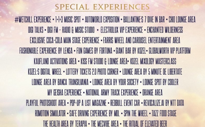 EXPERIENȚE OFERITE DE PARTENERII COMERCIALI AI FESTIVALULUI
