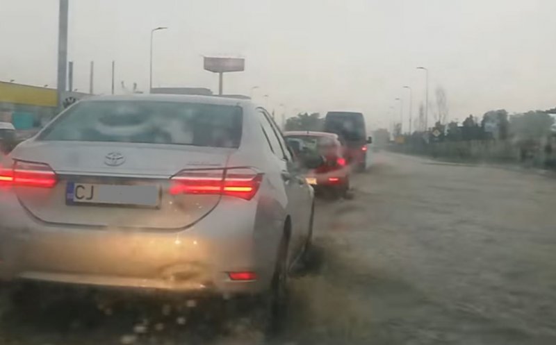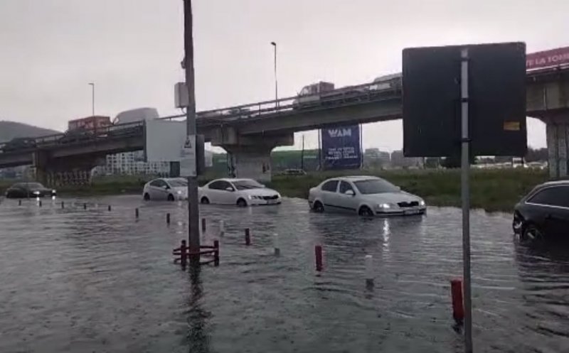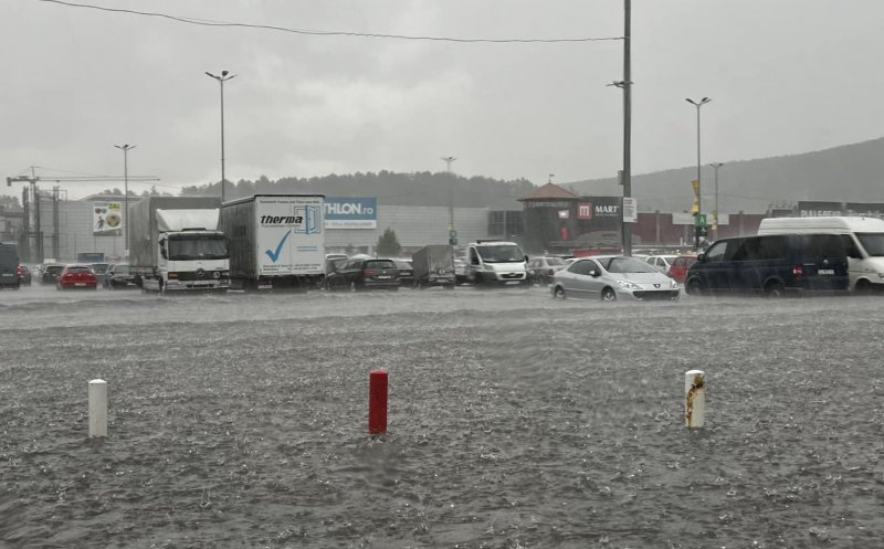 Echipaje ale ISU Cluj au fost solicitate să intervină în Florești, unde, în urma ploii torențiale, mai multe mașini au rămas blocate în apă, în parcarea mall-ului din comună.