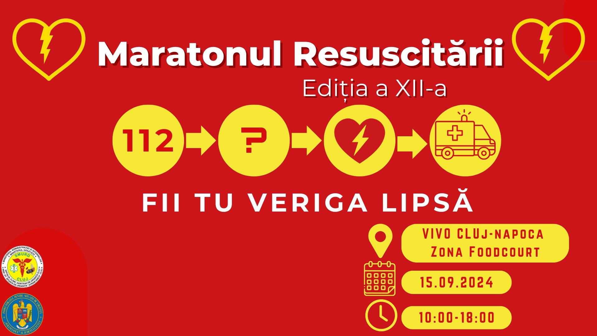 Toți cei interesați pot beneficia duminică, 15 septembrie, de un curs gratuit de prim-ajutor, din partea medicilor și paramedicilor SMURD, la o nouă ediție a Maratonului Resuscitării, organizată la Cluj.