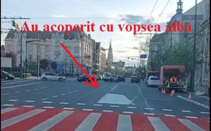 Un clujean a semnalat erorile de marcaj de pe Bulevardul 21 Decembrie, proaspăt reabilitat. Ulterior, s-a intervenit cu vopsea și s-a ascuns greșeala.