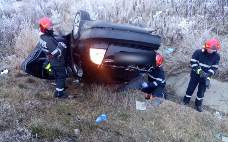 "Au fost alertate două autospeciale și un echipaj medical SMURD, pompierii au găsit la locul evenimentului o mașină răsturnată pe plafon, în șanțul de colectare a apelor pluviale și ocupanții ieșiți din aceasta. O femeie de circa 30 de ani a fost consultată și transportată la spital, în stare de conștiență, pentru investigații și tratamente de specialitate", a transmis ISU Cluj.