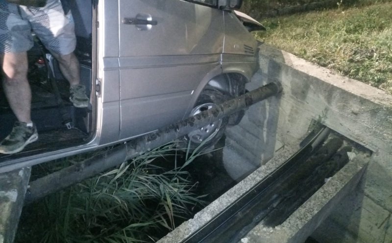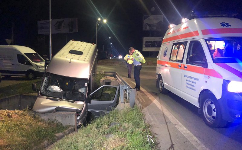 "DN1C 15.07.2019 ora 01:46 km 9+600 m< un bărbat de 50 de ani, cetățean din Republica Moldova, a condus microbuzul, nu a adaptat viteza de deplasare la condițiile de drum, a pătruns în sensul giratoriu, a sărit peste acesta și a părăsit partea carosabila prin dreapta sensului său de deplasare, respectiv înspre CJ-Napoca, și a intrat în coliziune frontală cu un canal de colectare a apelor pluviale. O femeie de 63 de ani, pasageră, a suferit leziuni ușoare", transmite IPJ Cluj.