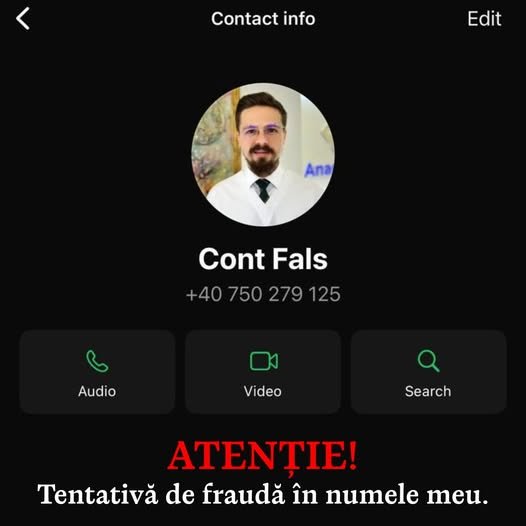 Orice mesaj sau apel prin care vi se solicită bani în numele meu reprezintă o tentativă de fraudă. Vă rog să nu oferiți date personale sau bancare și să raportați astfel de situații. Vă mulțumesc pentru încredere și pentru faptul că ne ajutați să prevenim astfel de situații prin distribuirea acestui mesaj”, a transmis chirurgul în urmă cu o lună.