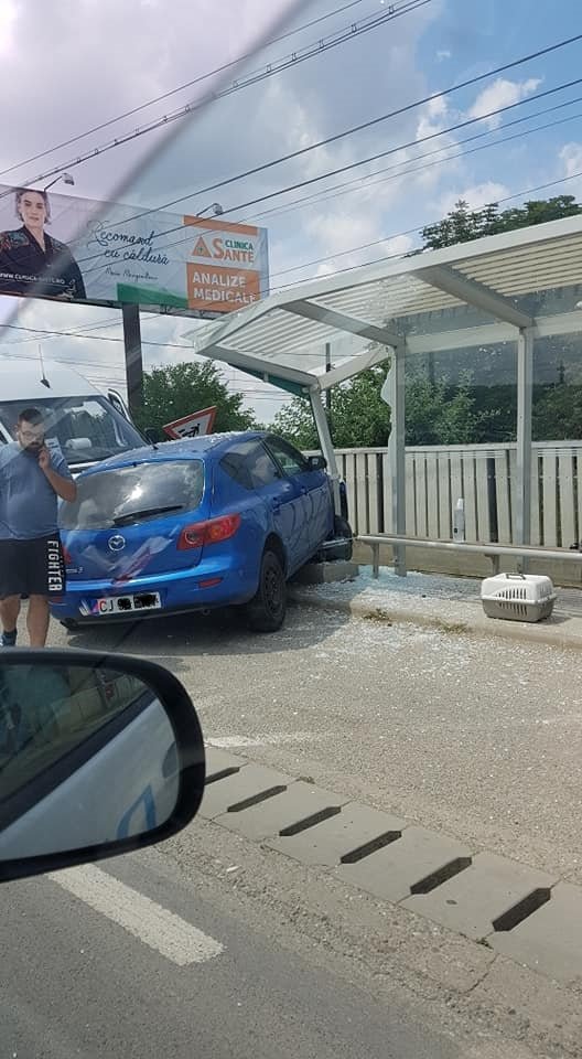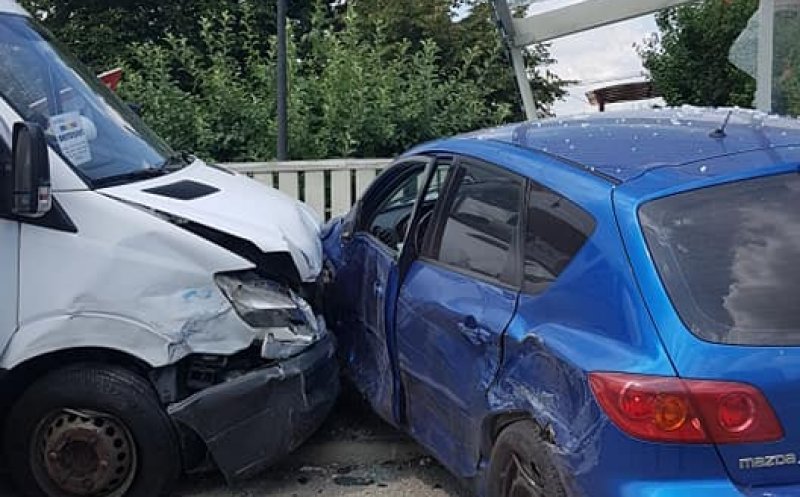 Impactul dintre dubă și autoturism s-ar fi putut încheia cu o tragedie, având în vedere că cele două autovehicule s-au înfipt într-o stație de autobuz, unde au strivit banca aflată sub copertină. La fața locului a fost solicitat un echipaj de descarcerare.