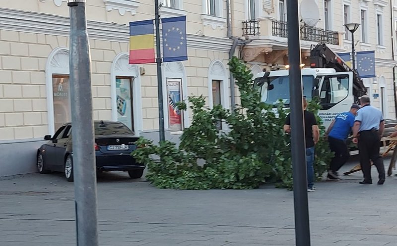 Şoferul unui BMW a smuls un copac din Piața Unirii înainte să se izbească de zid