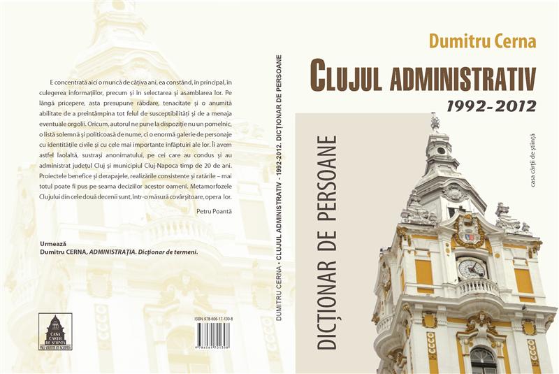 E vorba despre o lansare de carte, prima organizată în clădirea fostului Casino din centrul oraşului, reabilitată cu bani europeni. Volumul "Clujul administrativ 1992-2012. Dicţionar de persoane" e semnat de Dumitru Cerna şi va fi prezentat de scriitorii Irina Petraş, Petru Poantă, Ion Cristofor, Ionuţ Ţene şi de istoricul Vasile Lechinţan. La lansare vine şi primarul Radu Moisin.