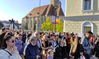 Peste 100 de persoane protestează, sâmbătă după-amiază, în centrul municipiului Cluj-Napoca împotriva restricțiilor generate de pandemia de COVID-19.