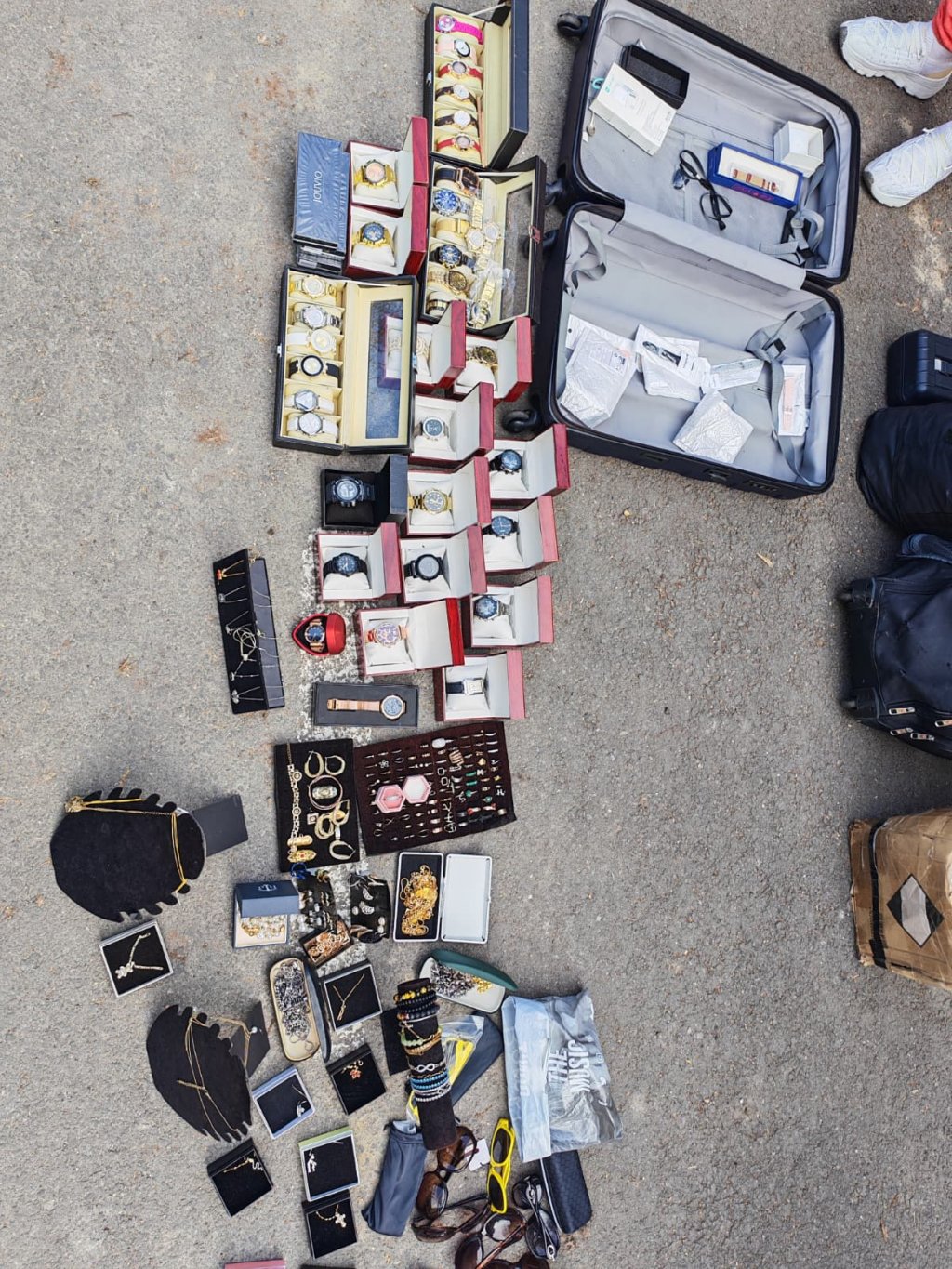Totodată, au fost identificate mai multe bunuri, respectiv articole de bijuterie și accesorii precum ceasuri, inele, cercei, lanțuri, brățări și ochelari, existând suspiciunea că acestea ar fi contrafăcute, purtând însemne similare unor mărci înregistrate. Bunurile au fost ridicate în vederea verificărilor. În cauză a fost întocmit dosar penal sub aspectul săvârșirii infracțiunii de punerea în circulație a unor produse purtând o marcă identică sau similară cu o marcă înregistrată.