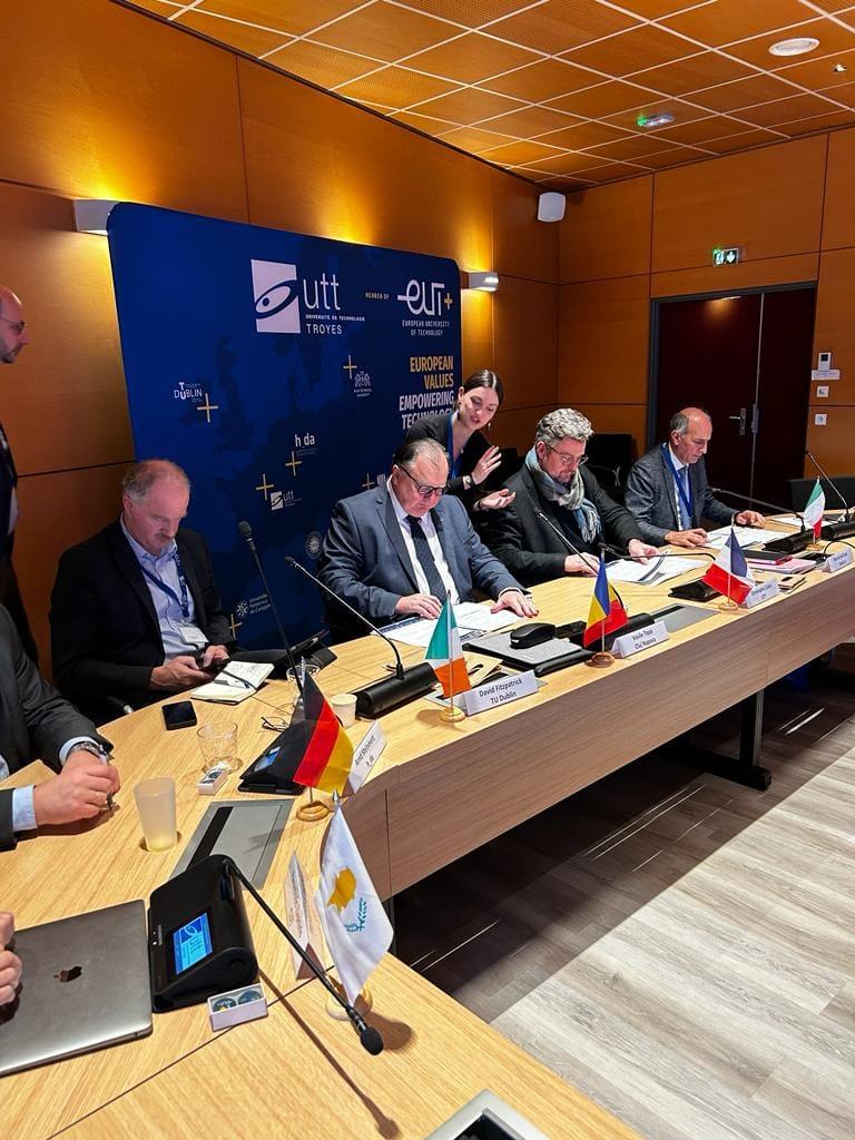 Joi, 25 ianuarie, Rectorul Universității Tehnice din Cluj-Napoca (UTCN), Prof. dr. ing. Vasile Țopa, a preluat președinția rotativă a Consiliului Rectorilor Universității Europene de Tehnologie (EUt+), în cadrul întâlnirii rectorilor care a avut loc la Universitatea de Tehnologie din Troyes, Franța. Acest moment marchează consolidarea rolului asumat de universitate în cadrul alianței EUt+ (intitulată EUt Accelerate) și coordonarea pachetului de lucru privind cercetarea și educația orientată spre cercetare.