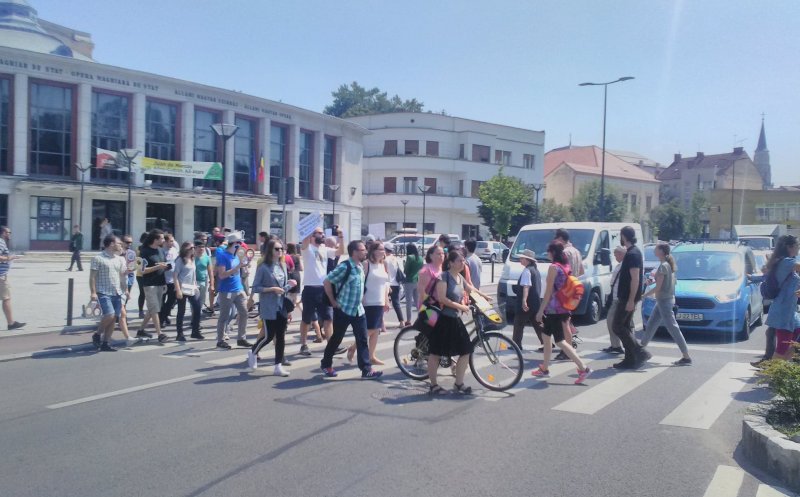 Vineri, la prânz, câteva zeci de persoane au protestat în mod inedit împotriva adoptării de către majoritatea PSD+ALDE din Parlament a Codului Penal. Protestatarii au ocupat pentru câteva minute o trecere de pietoni din centrul Clujului.