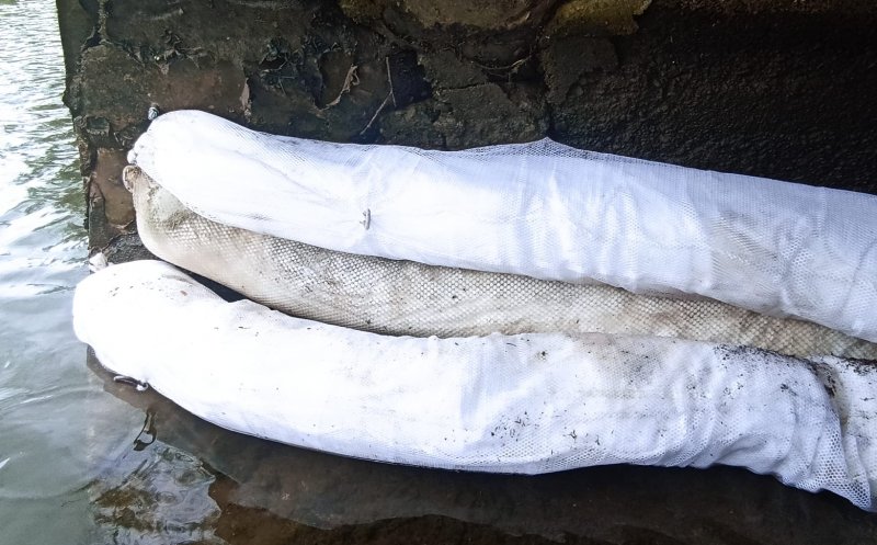 Specialiștii Sistemului de Gospodărire a Apelor (SGA) Cluj continuă să intervină pentru limitarea efectelor poluării râului Someșul Mic. Aceștia au suplimentat materialul absorbant și utilizează spill sorb, un absorbant natural și biodegradabil, pentru a reține hidrocarburile.