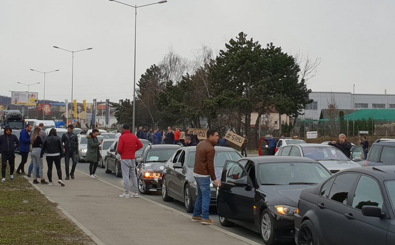 Clujenii s-au alăturat protestului #şîeu. România s-a oprit pentru 15 minute să ceară construirea de autostrăzi. Traficul din centrul oraşului a fost complet blocat, iar angajaţii mai multor companii au întrerupt programul şi au protestat în stradă.