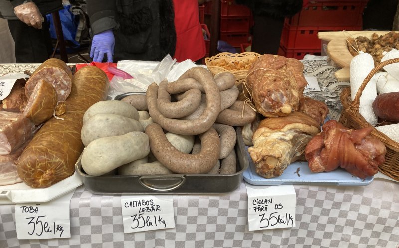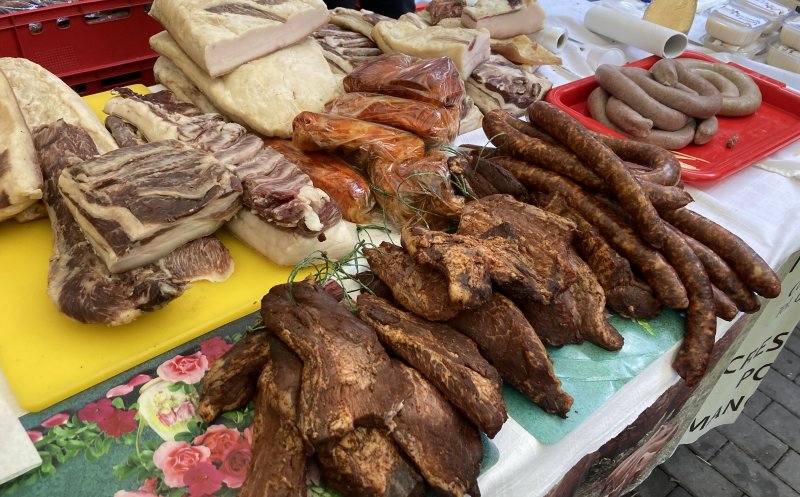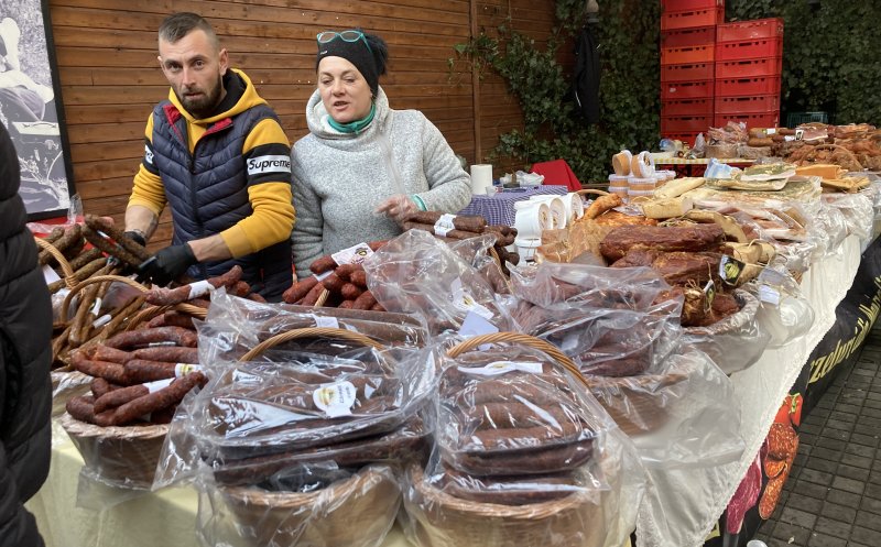 Vizitatorii târgului pot cumpăra produse din carne de porc, brânză, pâine de casă, zacuscă, murături, vin, țuică, prăjituri. Toate de la producători din țară.