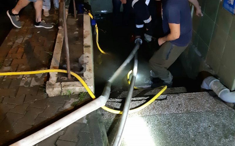 Alerta a fost dată în jurul orei 21.40, iar pompierii au acționat timp de două ore pentru a evacua apa acumulată, cu o adâncime de cca 70 de cm, din două spațiile comerciale situate în subsolul respectiv.